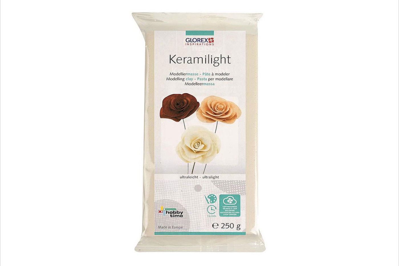 Un’argilla da modellare indurente all’aria, super leggera e morbida. Prodotto Glorex dal colore bianco. Pronta per l’uso, malleabile e facile da lavorare. Anche strutture piccole e sottile si lasciano modellare ottimamente con il Keramilight. Tempo di essicazione, secondo lo spessore, di circa 24 ore. Una volta aperto chiudere ermeticamente. Questo prodotto Glorex è disponibile in confezione da 250 gr.
